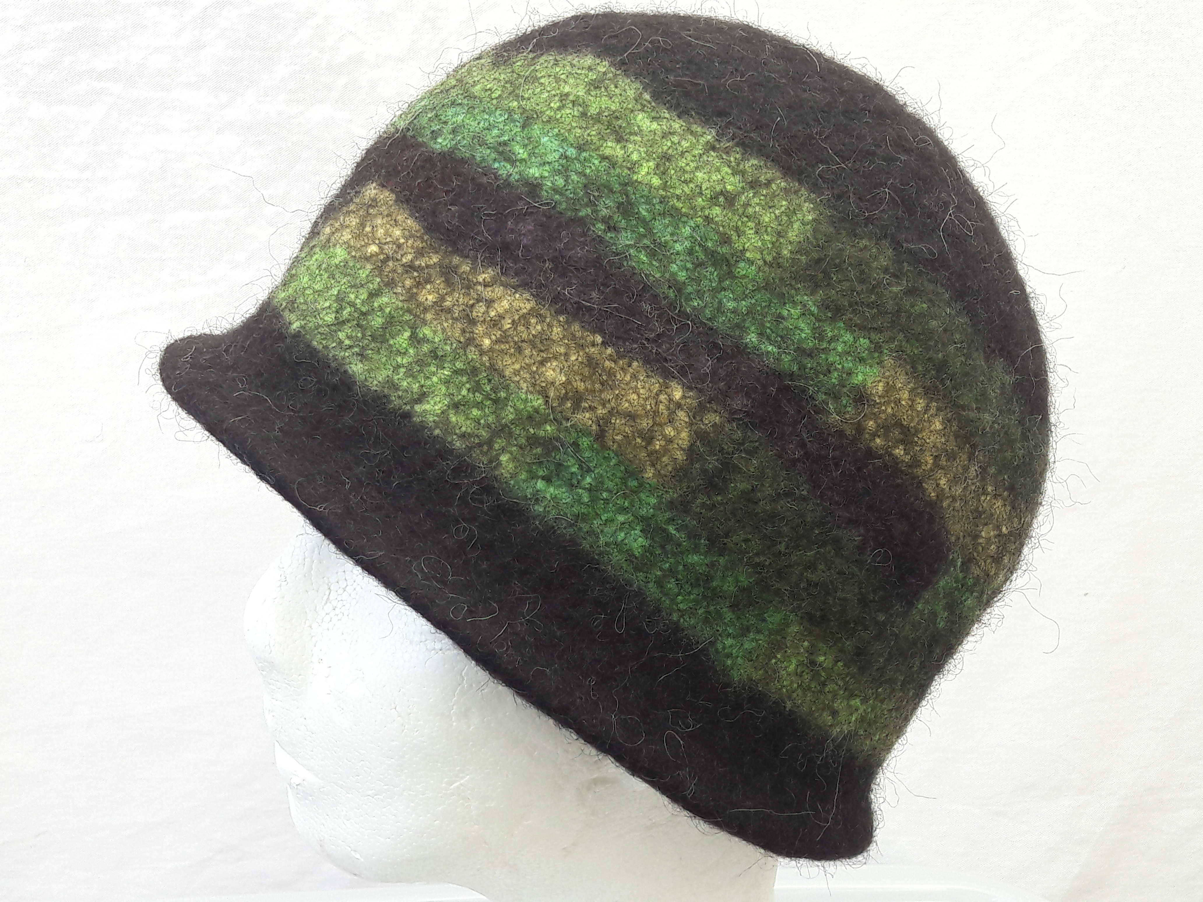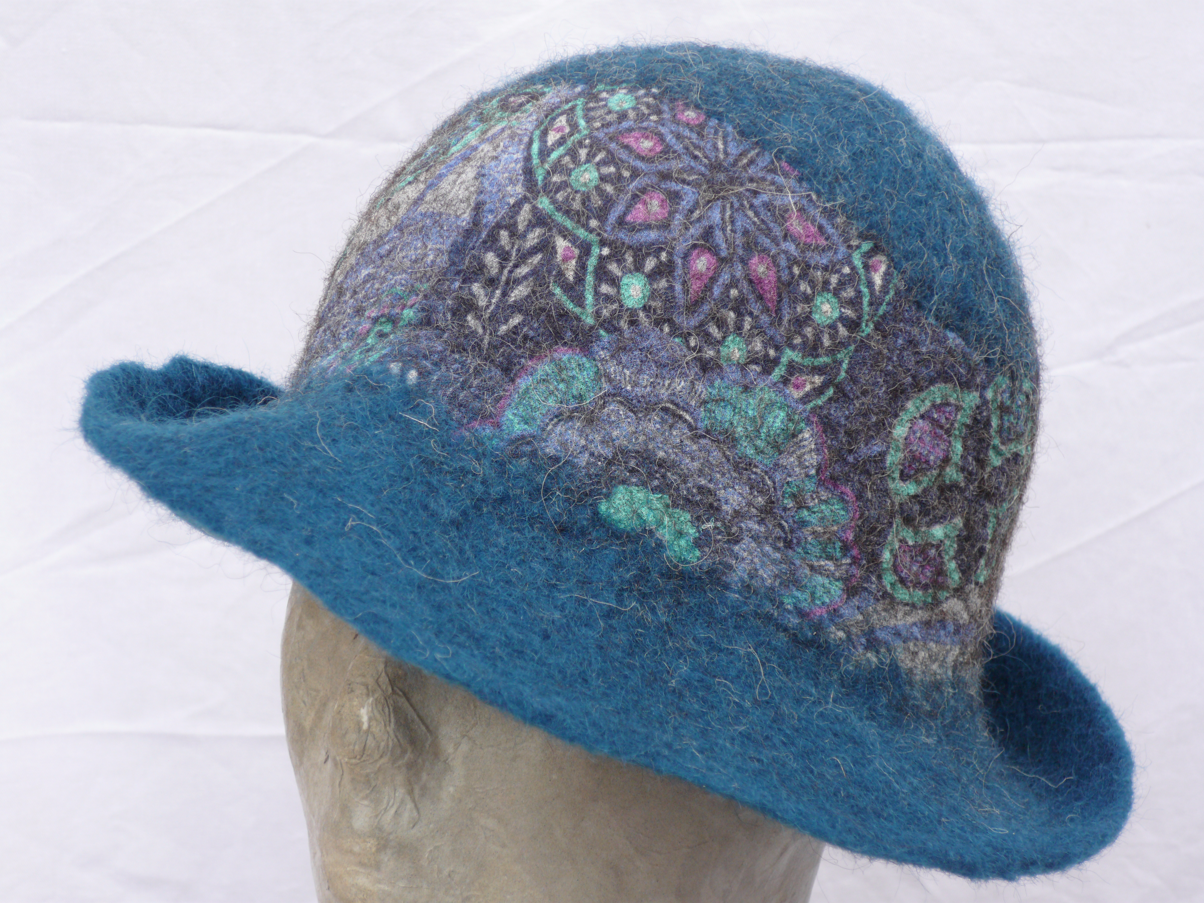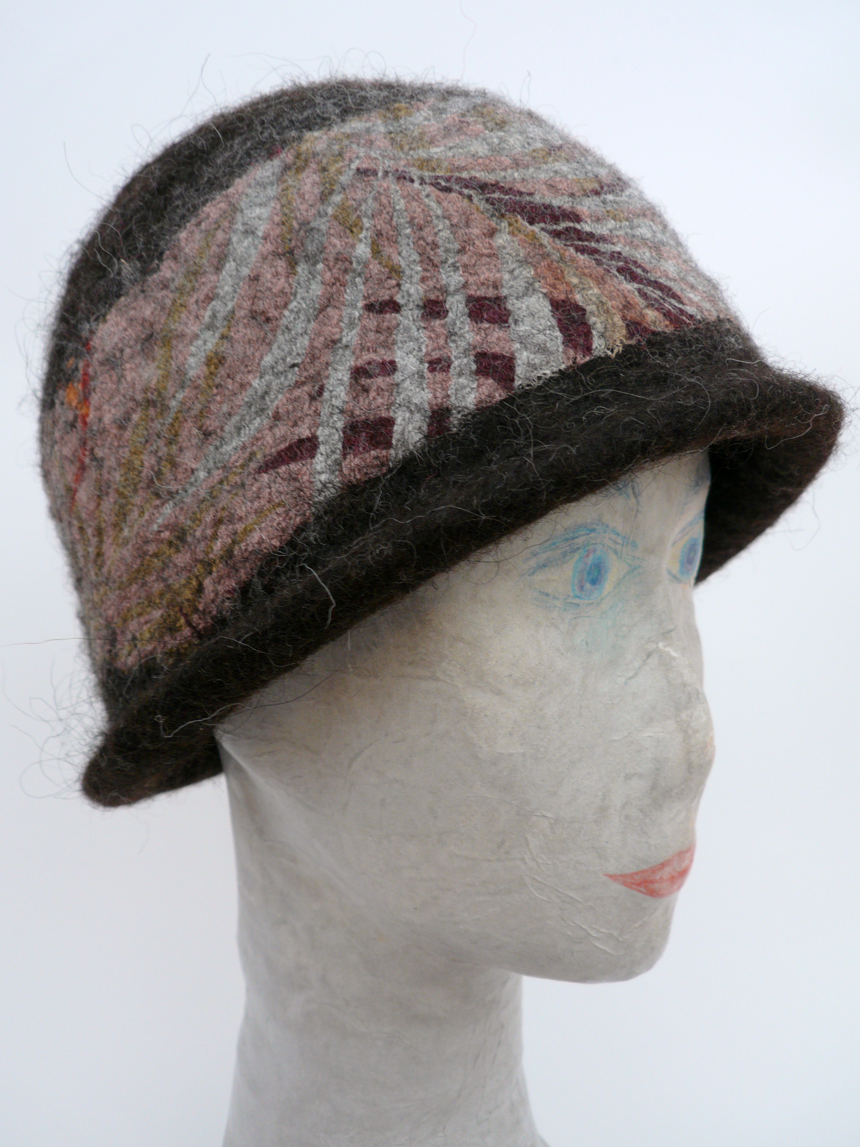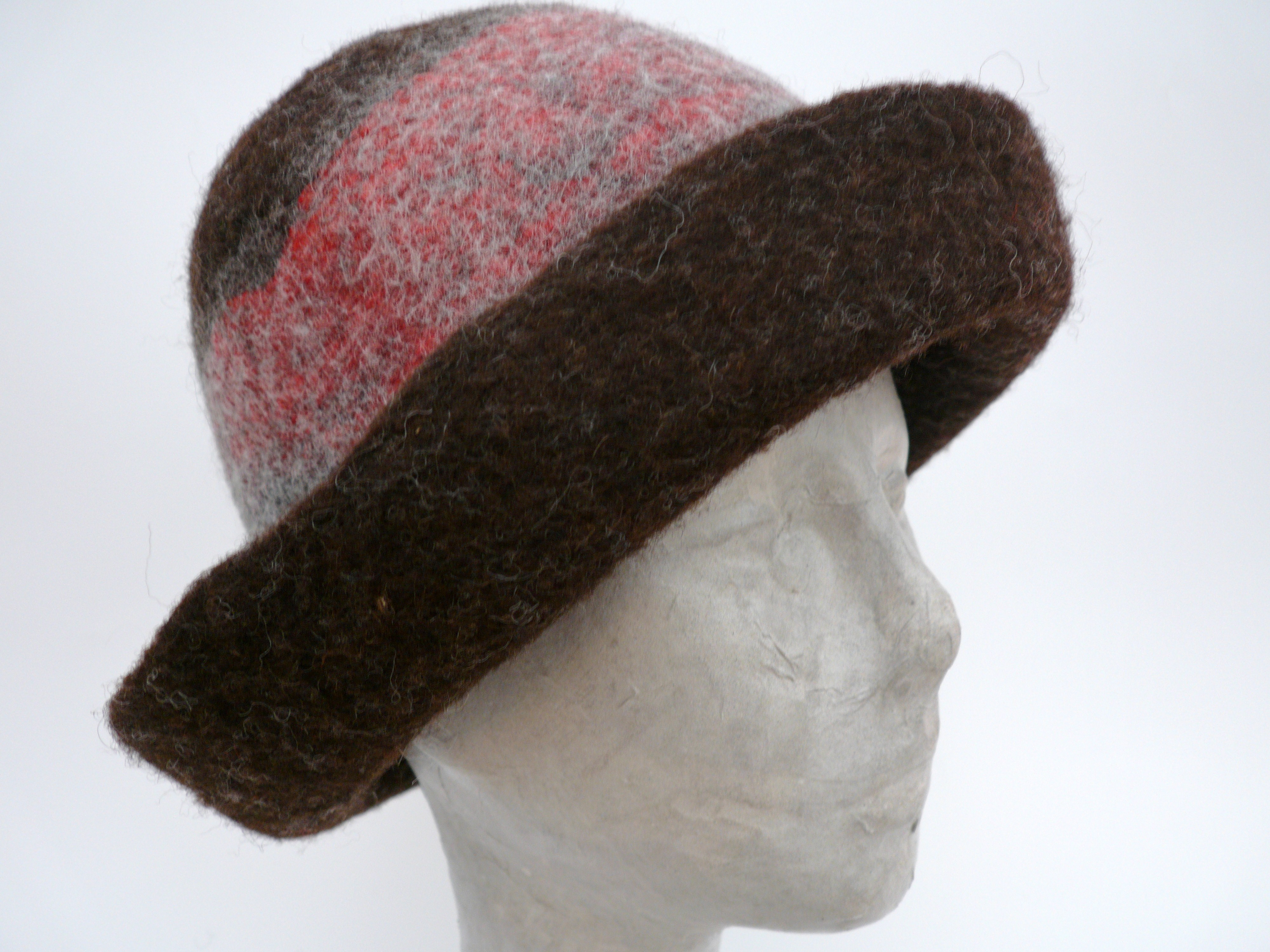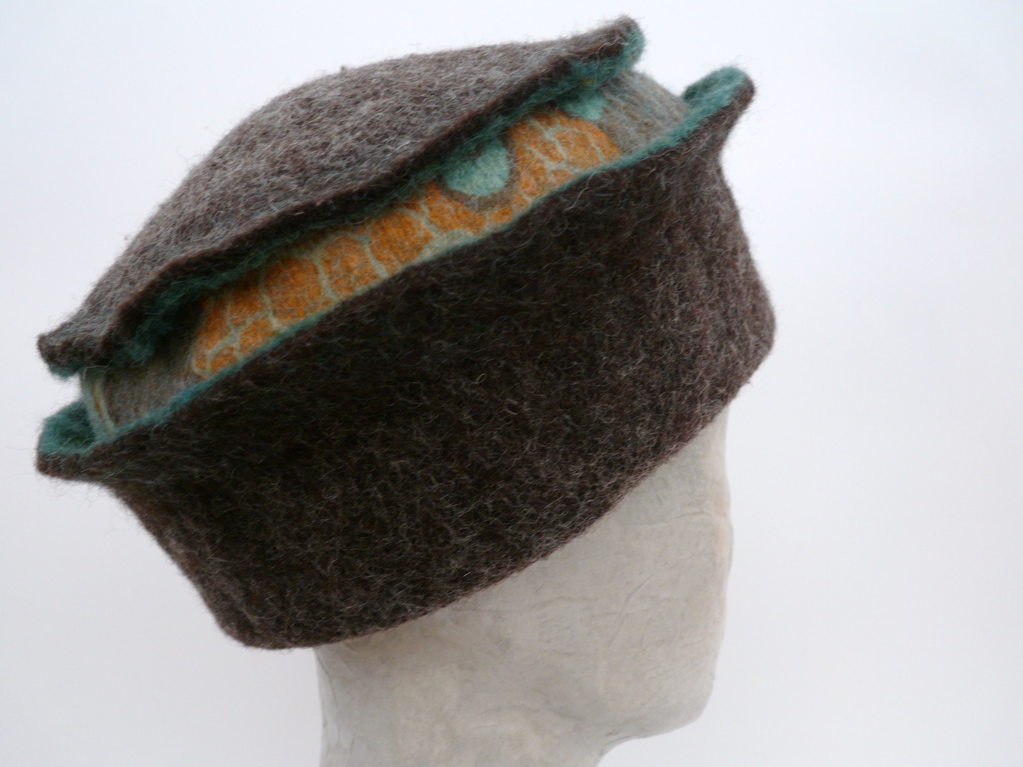 Diese Filzmütze bezieht sich auf die klassische Form der englischen Flatcap. Meine Mützen sind aus einem Stück geformt. Ohne Nähte werden sie aus handgemachtem Wollfilz wie „aus einem Guß“ gearbeitet. Handgefilzt aus reiner Schafwolle und Seide (bei manchen Modellen). So entstehen sehr leichte Mützen aus verschiedenen Wollarten wie Tiroler Bergschafwolle, Walliser Alpenwolle, schottischer Wolle und/oder Merinowolle.